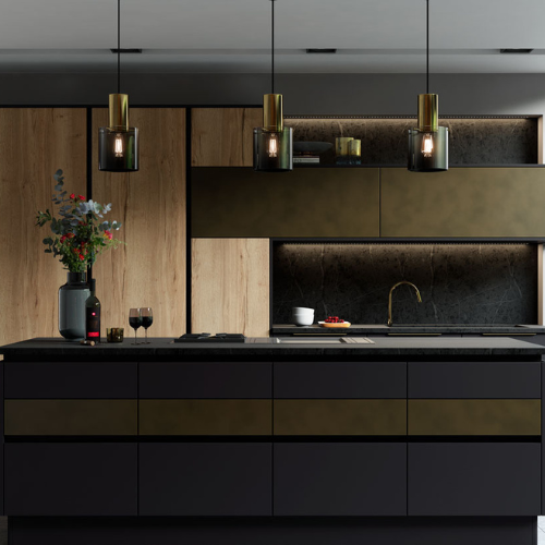 Kitchen accessories are integral to any design and style of the kitchen; they are an imperative component in blending colour and aesthetics. They will enhance and elevate your kitchen space when carefully thought through, making the statement and impression you so wish to convey. The classic combination of dark cabinetry colours set against brass and bold vintage gold features such as taps, lighting and handles provide a stunning effect, sought after in any kitchen style. Due to black and white being a stark colour combination, muted and pastel colours such as blush pinks are ideal for chairs and vases and work well when used as a paint treatment for the walls.